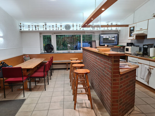 Entspannen vor dem Schießtraining oder auch Ausklang nach dem Training: unser Vereinsheim bietet eine Auswahl an kalten und warmen Getränken sowie Gutes gegen den kleinen Hunger zwischendurch.